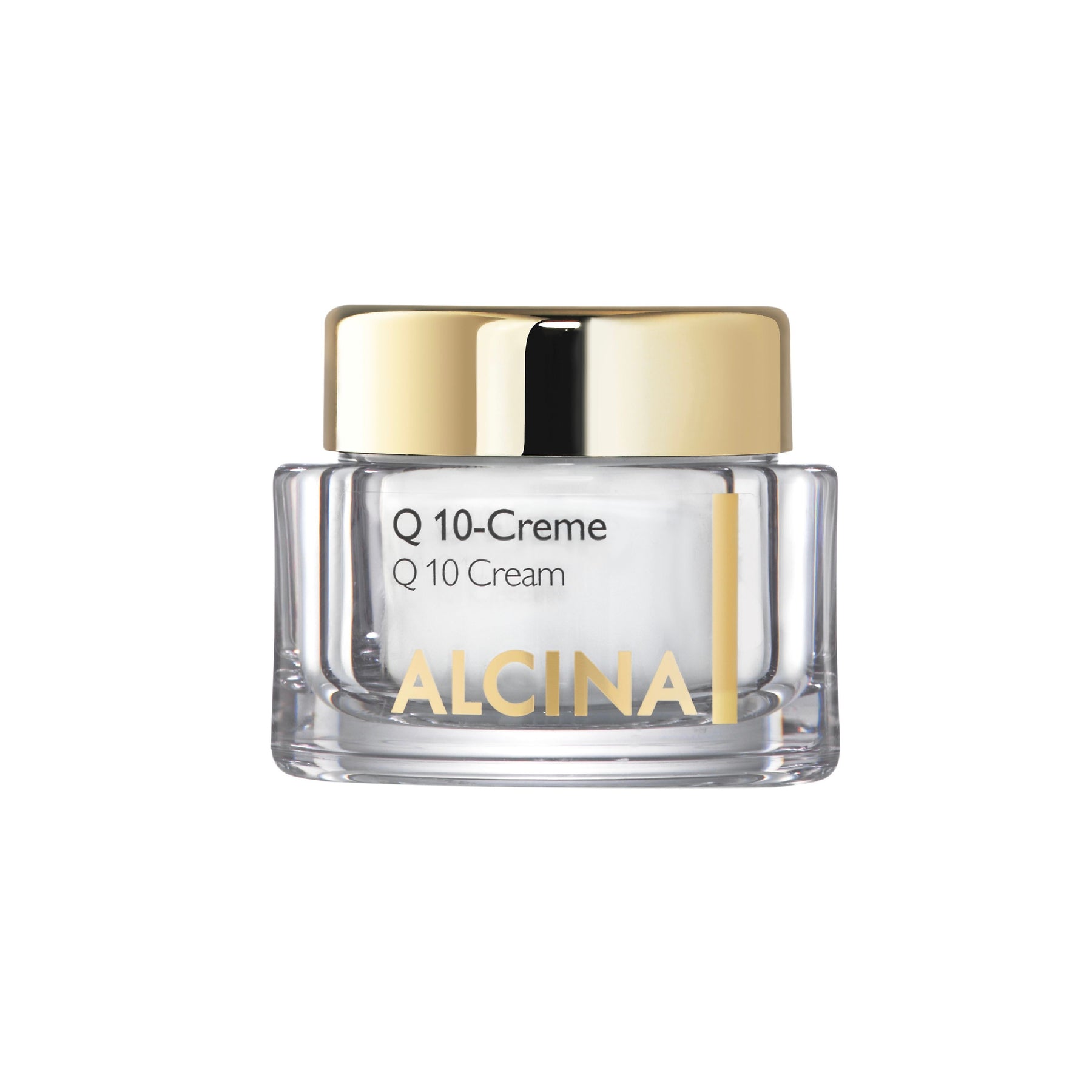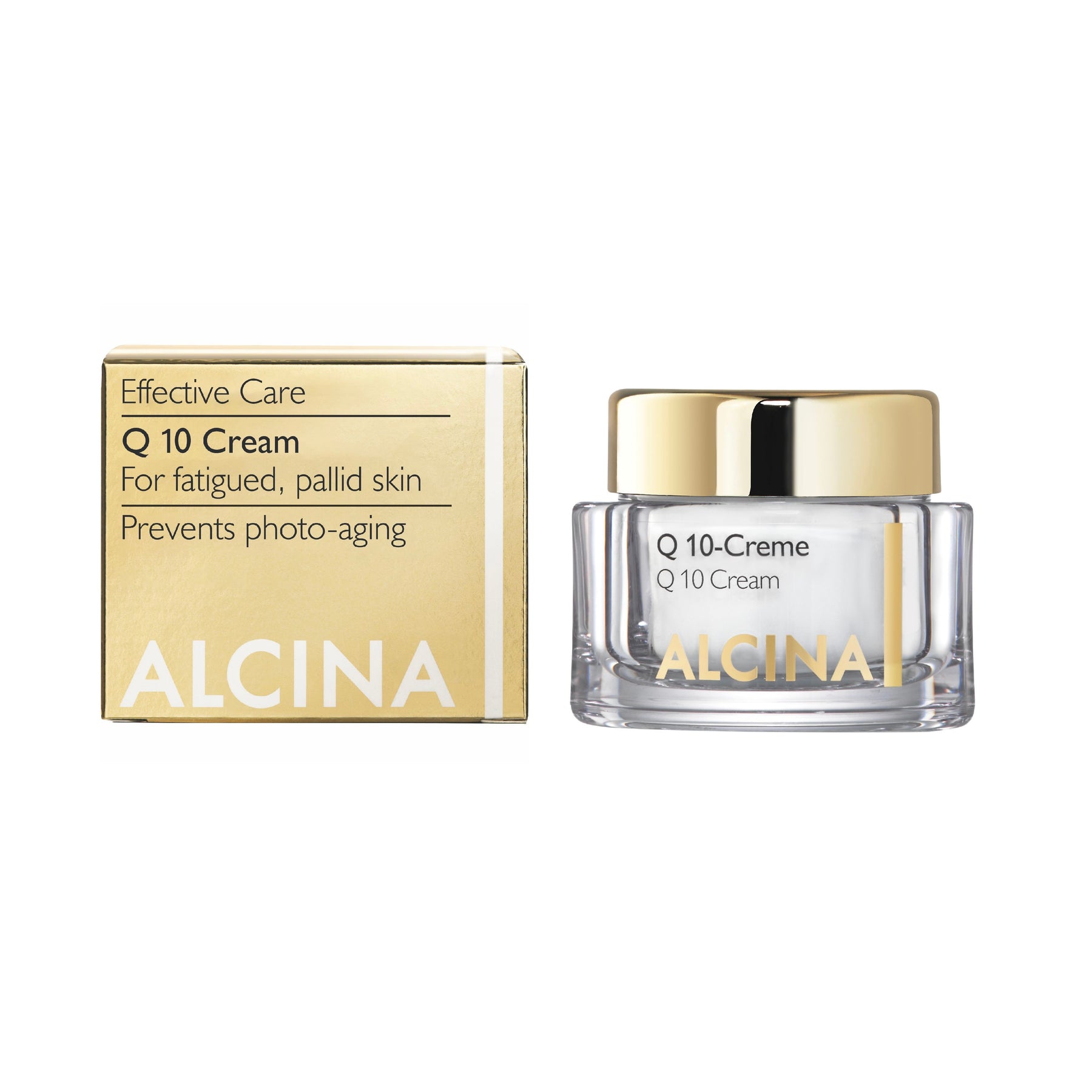 ALCINA Q 10 Cream, with the energizer coenzyme Q 10, Vitamin E & shea butter. Improves the appearance of fatigue, pallid skin. Prevents photo-aging